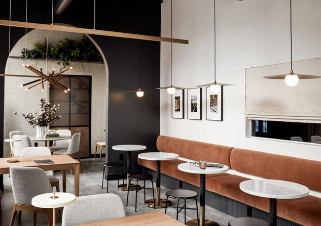 Full renovation, design and purchasing for Steer Media. Scope included conference rooms, film studio, kitchen & dining, lounge and more. Design included palette, materials, lighting, FF&E, custom window treatments, custom banquettes and commissioned art.